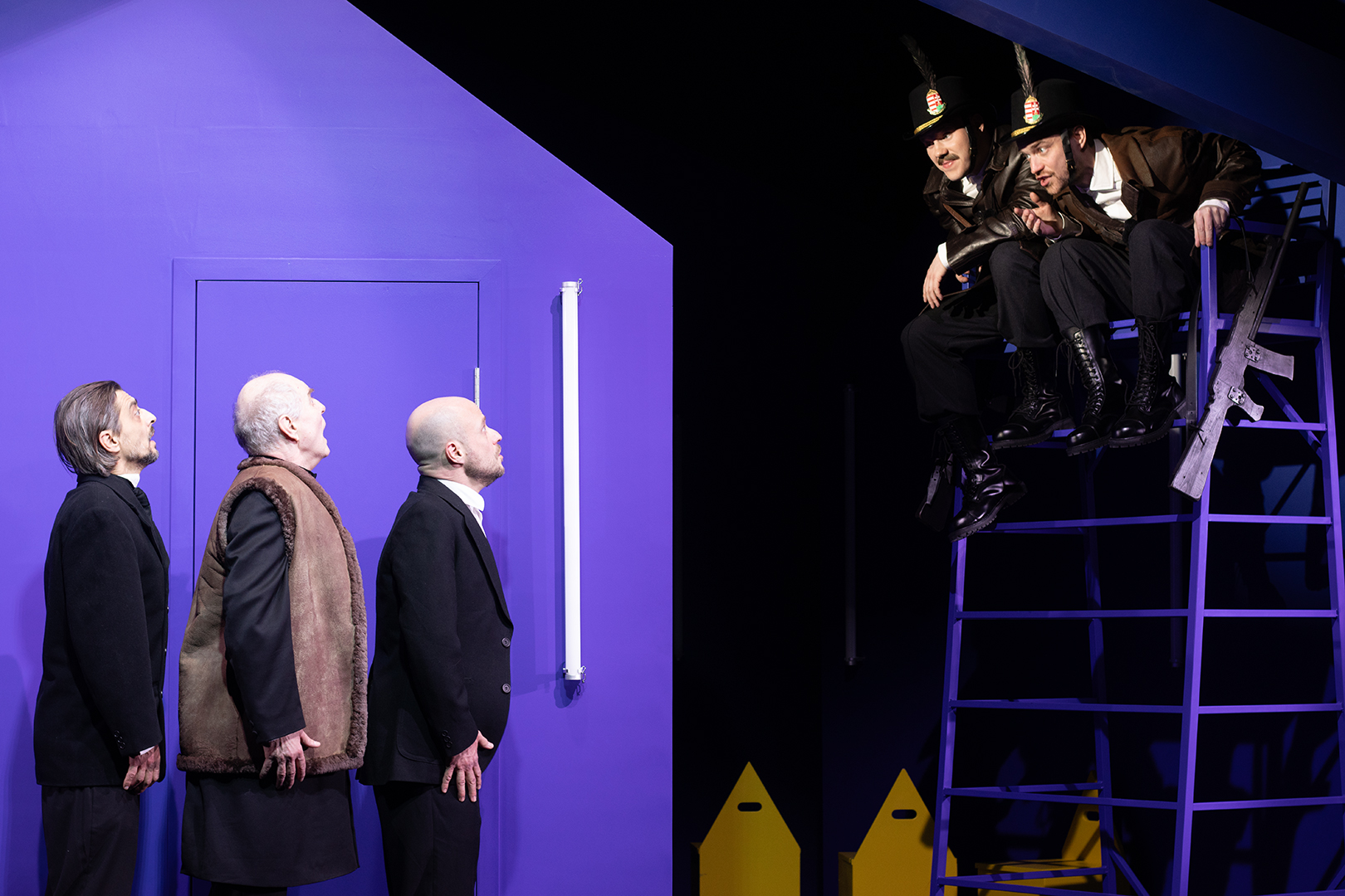 Székely Csaba legfrissebb történelmi szatírája sok humorral beszél a különböző identitások sokszor értelmetlen, érthetetlen harcáról. Arról, hogy hogyan címkézzük fel a másikat, hogyan összegződik az emberek közti személyes ellenszenv és a fentről irányított gyűlöletkeltés. Hogy milyen az, amikor a hatalom dönt arról, hogy ki lehet egy társadalom teljes értékű tagja, és kit kell kivetni magunk közül. És arról, hogy hogyan kérdőjeleződik meg az alapvetés, hogy az ember az ember. Még ha a saját szomszédainkról is van szó.