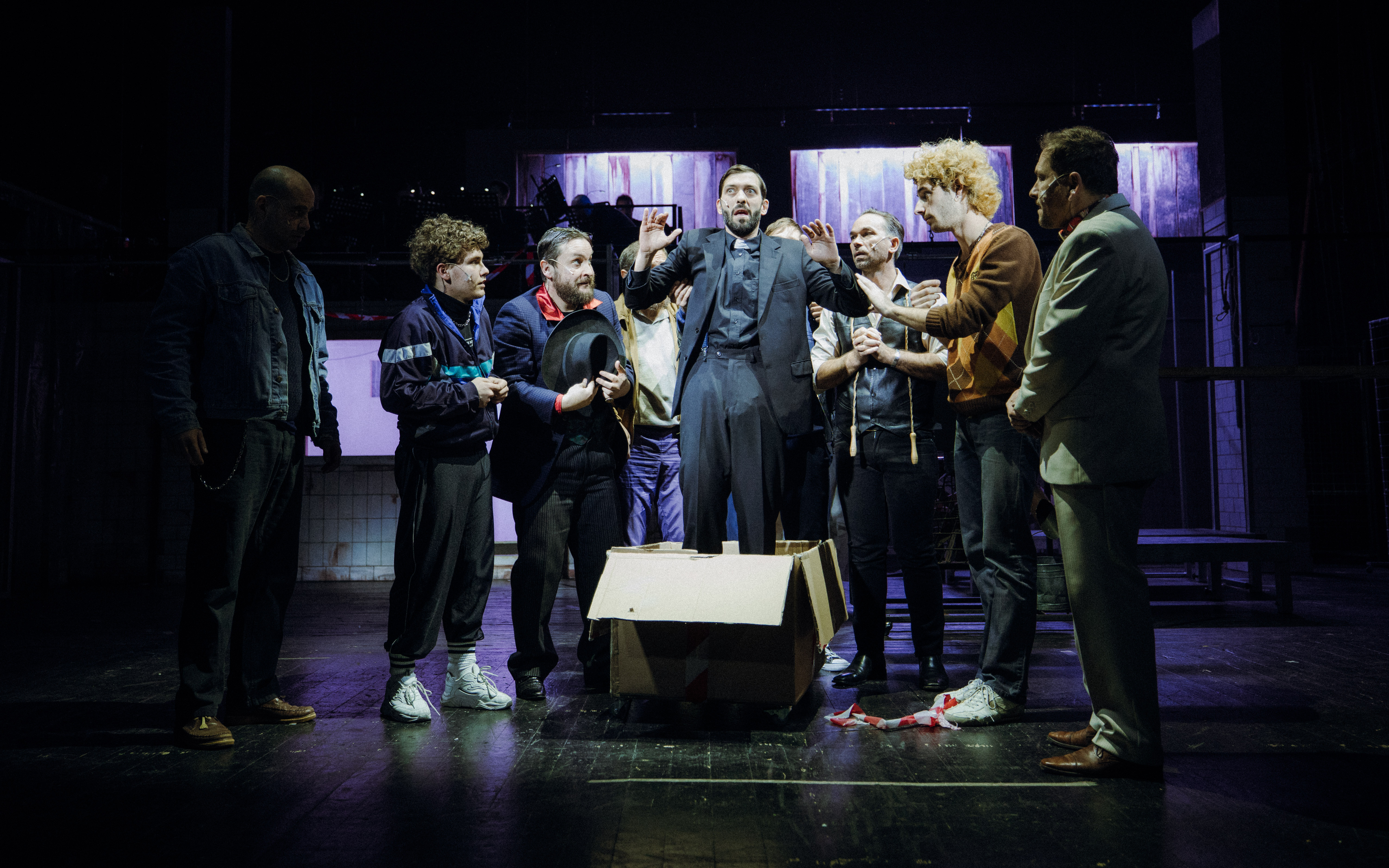 „Mi egy bankrablás, egy bankalapításhoz képest?”– kérdezi Brecht hírhedt Bicska Maxija a világ színpadain, csaknem 100 év óta újra és újra. Hiszen mindig voltak olyanok, akik saját birodalmuk építéséhez inkább mások zsebébe nyúltak, s épp úgy voltak közöttük kisstílűek, mint nagyban utazó gazemberek. Brecht az előbbiek világába kalauzol minket, de a piti bűnözők, álkoldusok és utcalányok zajos, szenvedélyes és korrupt alvilági birodalmának ábrázolása mellett, az utóbbiaknak is tükröt tart. S miközben a nagyváros utcáit elönti a választásokra özönlő tömegek áradata, a bűn és bűnüldözés összefonódó sikátoraiban viharos érzelmek és még annál is viharosabb érdekek között próbálja elveszejteni és megmenteni egymást a rendőrkapitány Tigris Brown, a Kolduskirály és Bicska Maxi, a tolvajok nőcsábász kapitánya. És persze Maxi megcsalatott és szerelmes Pollyja, Lucyja és Jennyje. A brechti hagyományból kiindulva az alkotók egy sajátok elidegenítő effektussal dolgozó, szerelemmel, feszültséggel és mai alakokkal teli, különleges humorú előadásban idézik meg Brecht alakjait, miközben Kurt Weill közkedvelt dalai is felcsendülnek.