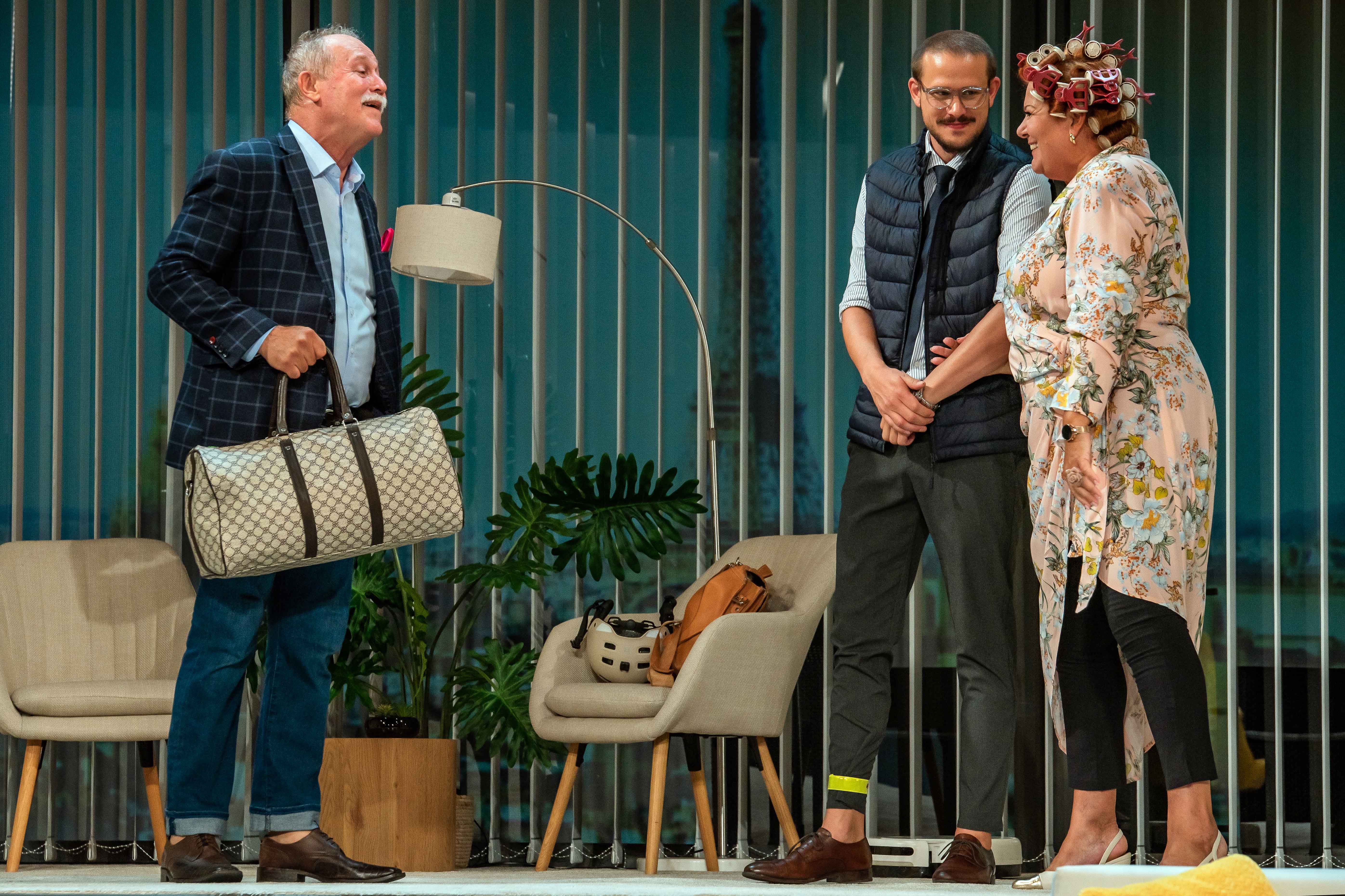 Szőcs Artur rendező napjainkba helyezi az eredetileg több mint hatvan éve játszódó történetet, s ekképp egy okosotthon technikai csodái is tovább komplikálják az eredeti bonyodalmakat.