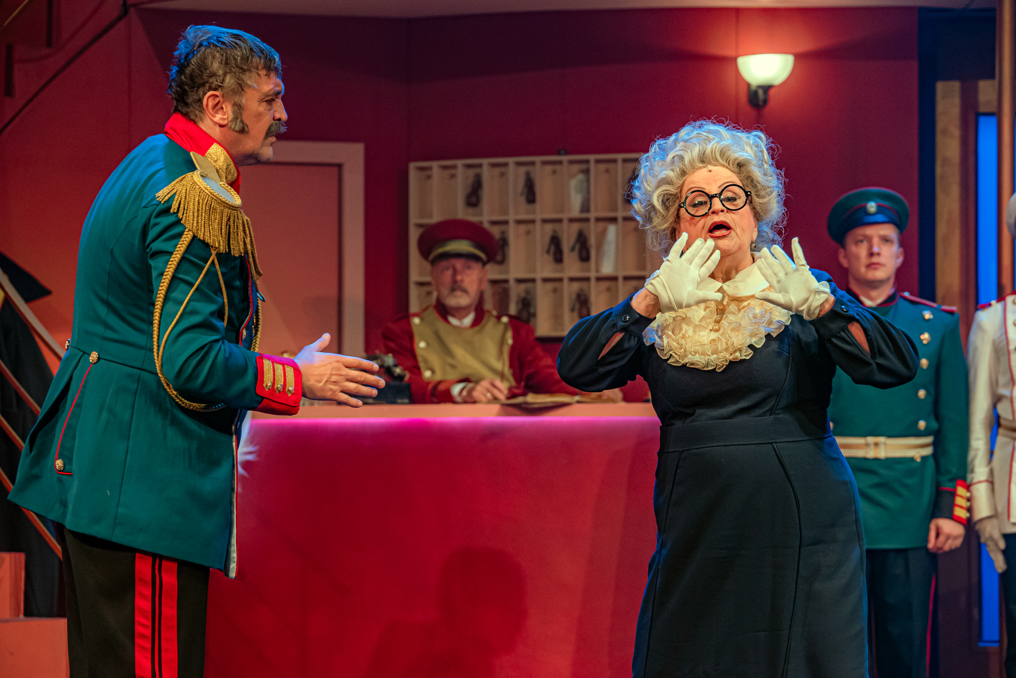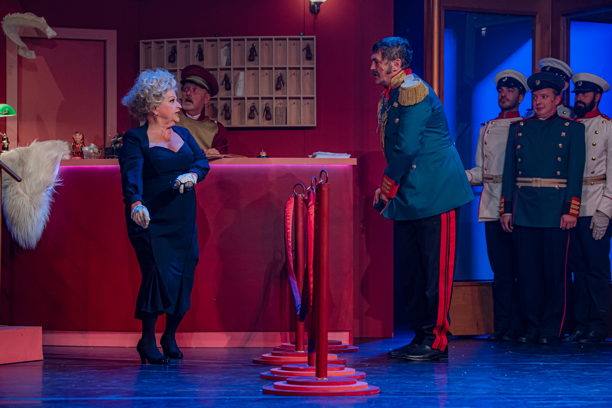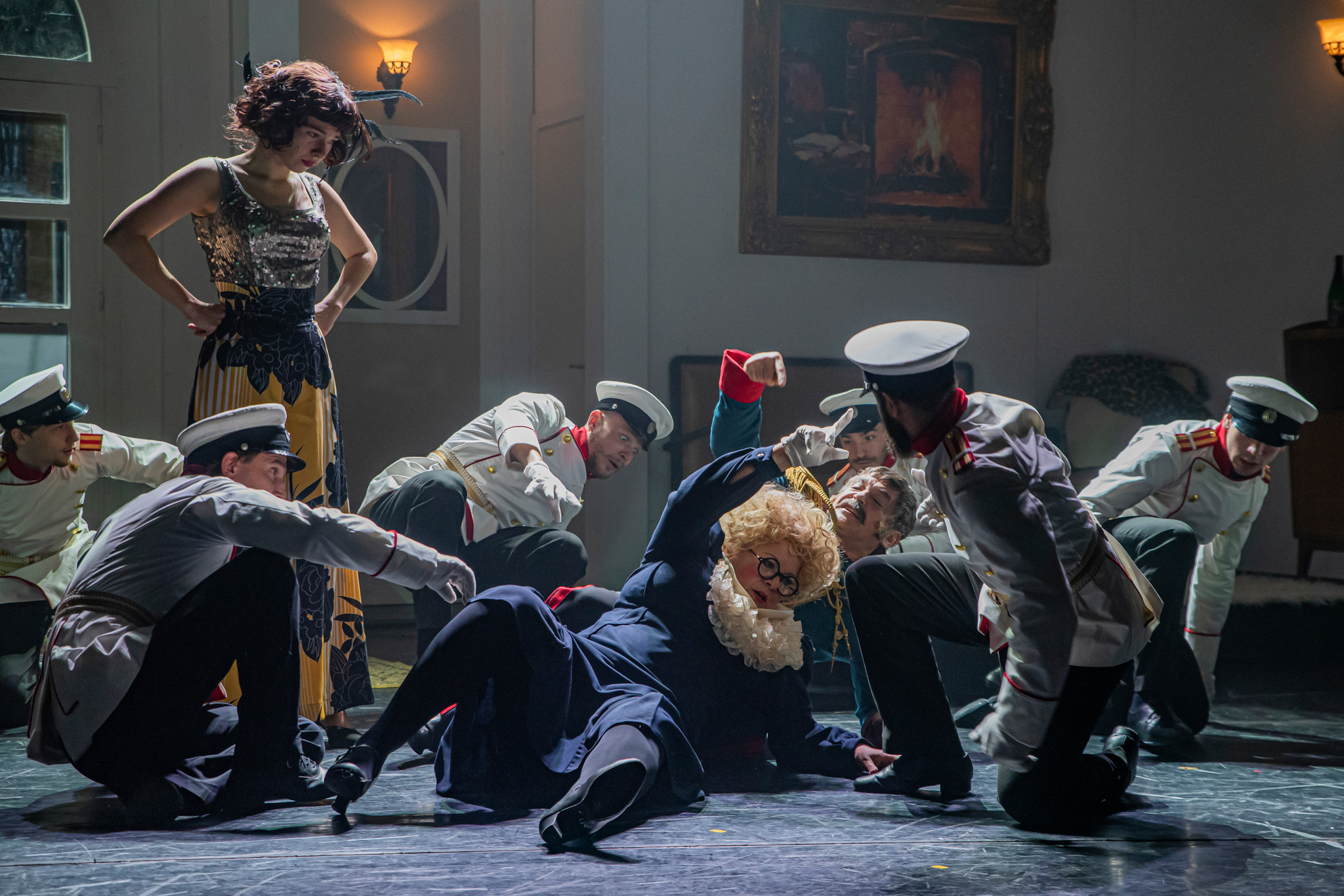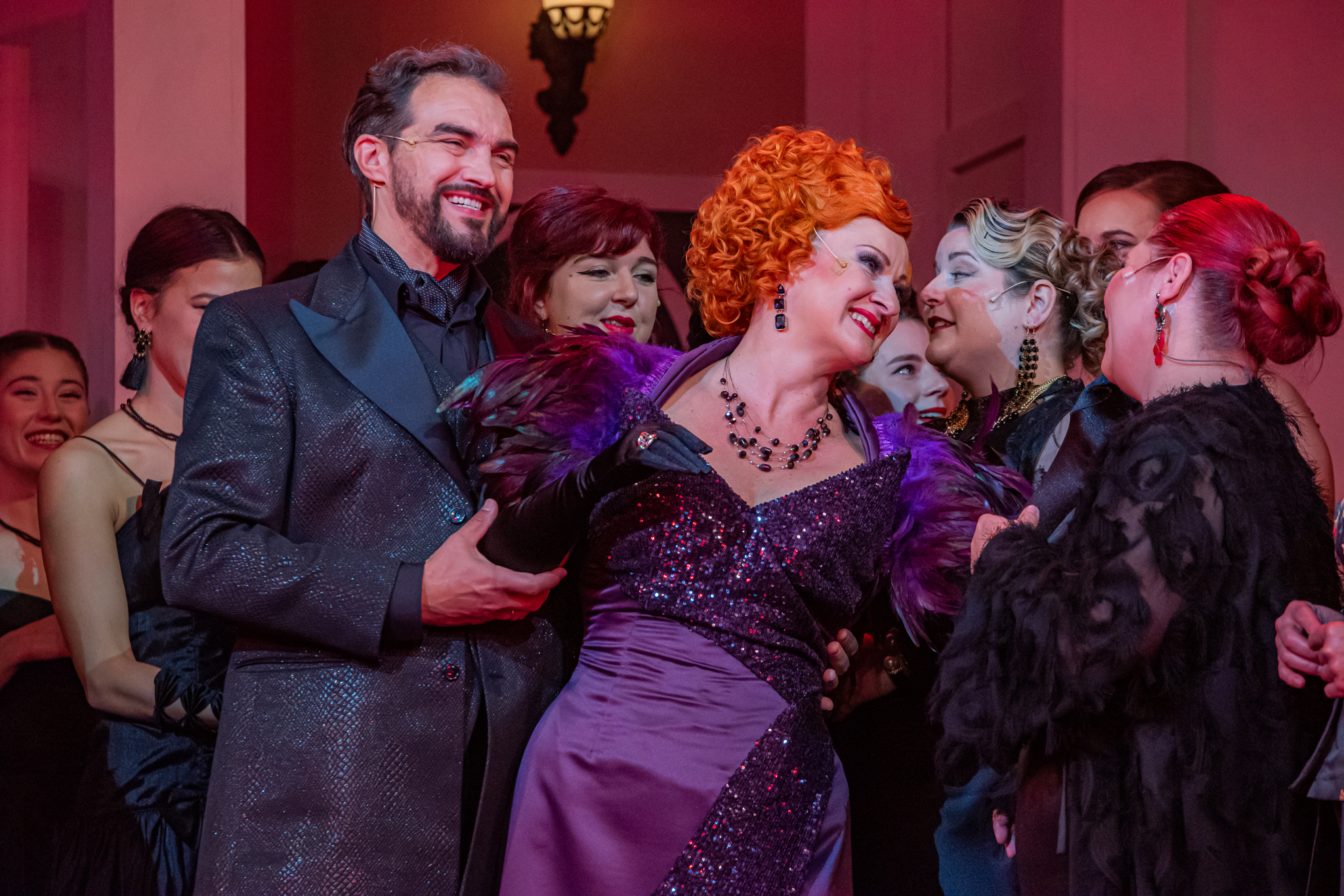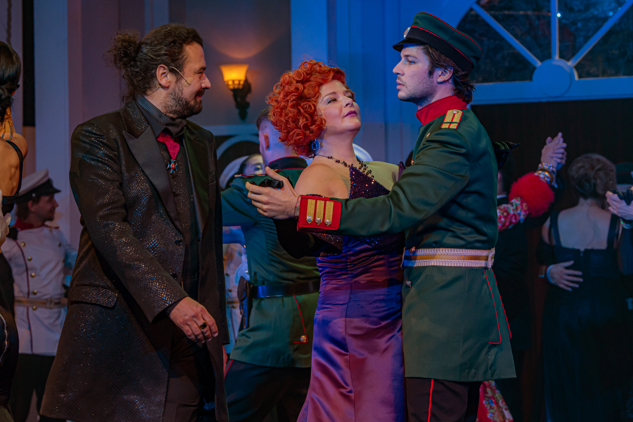 És emellett ott van Poire, a neurotikus impresszárió, pragmatikus nejével az oldalán, aki azért fohászkodik, hogy ha már egyeseknek ilyen elmebaj ez a szerelem-dolog, akkor legalább ne kellene frászban élni, előadásokat lemondani, igazodva a művésznő viharos magánéletéhez. Hogy mindeközben egy agyament Kormányzó is üldözi Sybillt, a Kormányzót meg a helyi nőegylet vezetője, az már szinte természetes. Ahogy természetesen medvében sem lesz hiány.