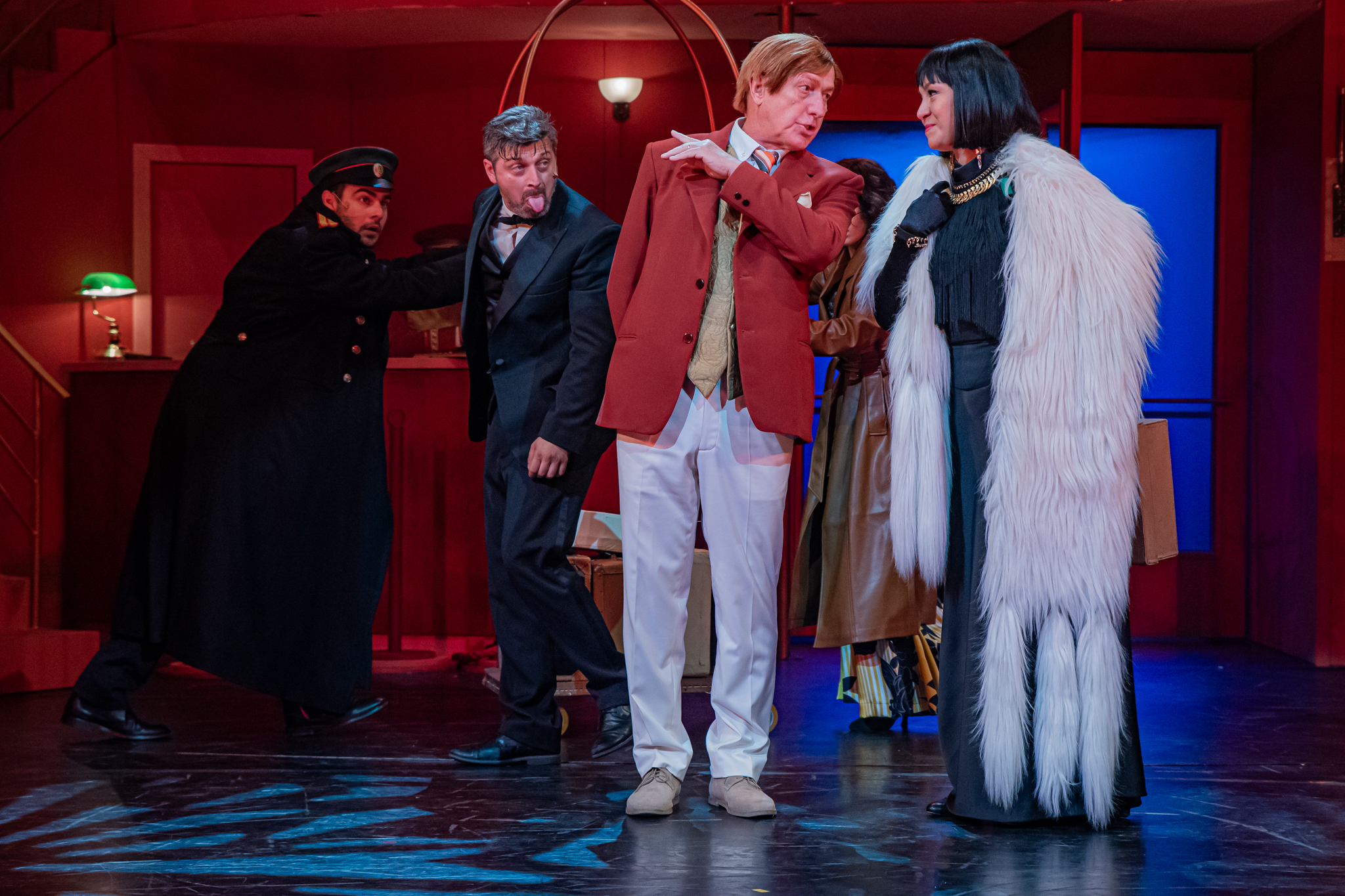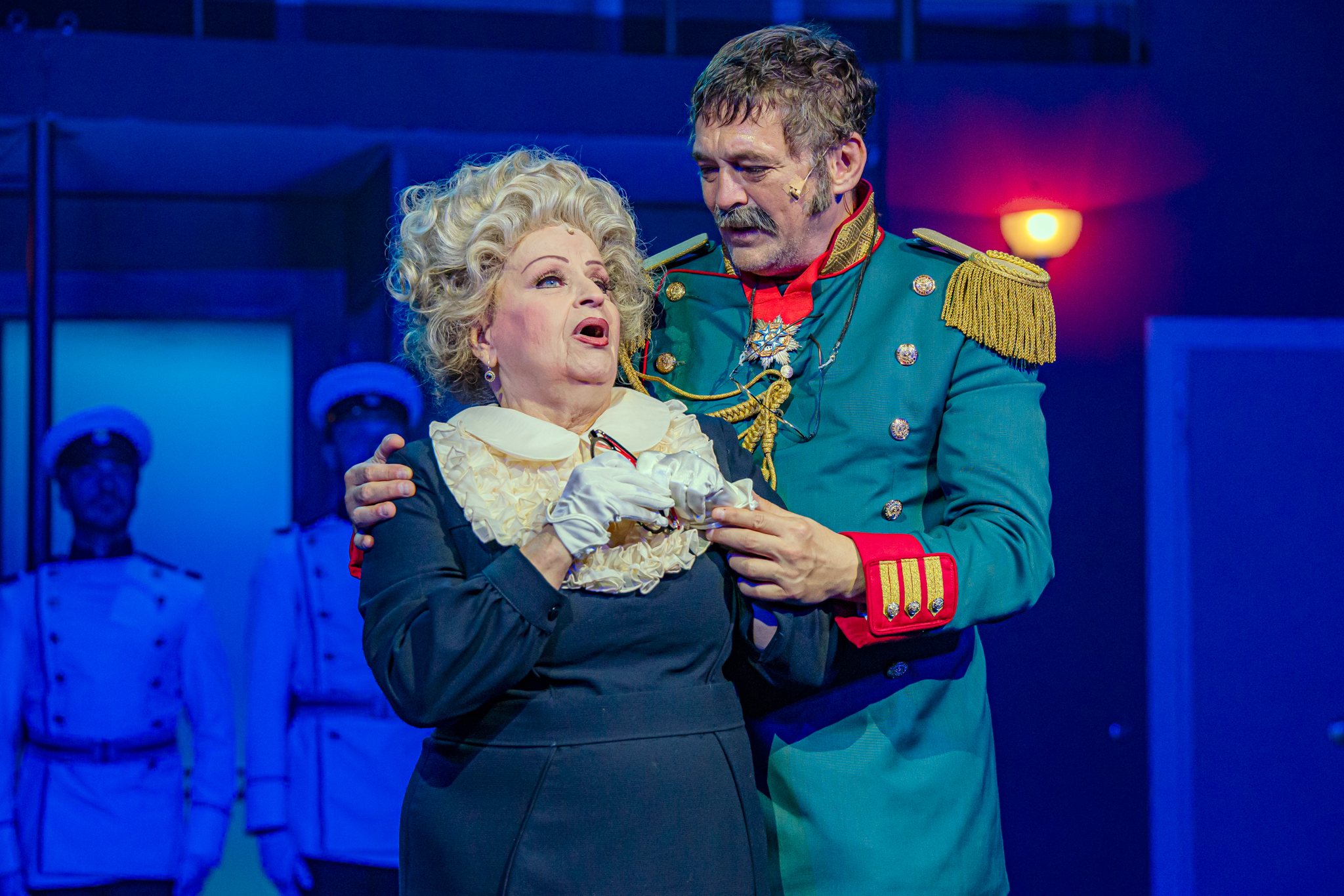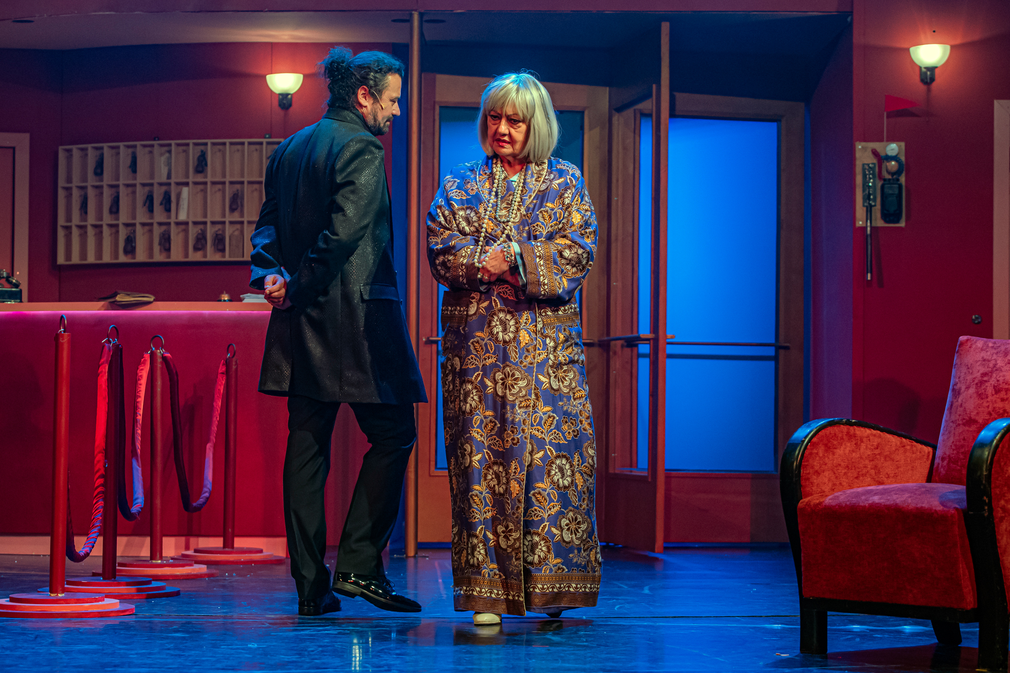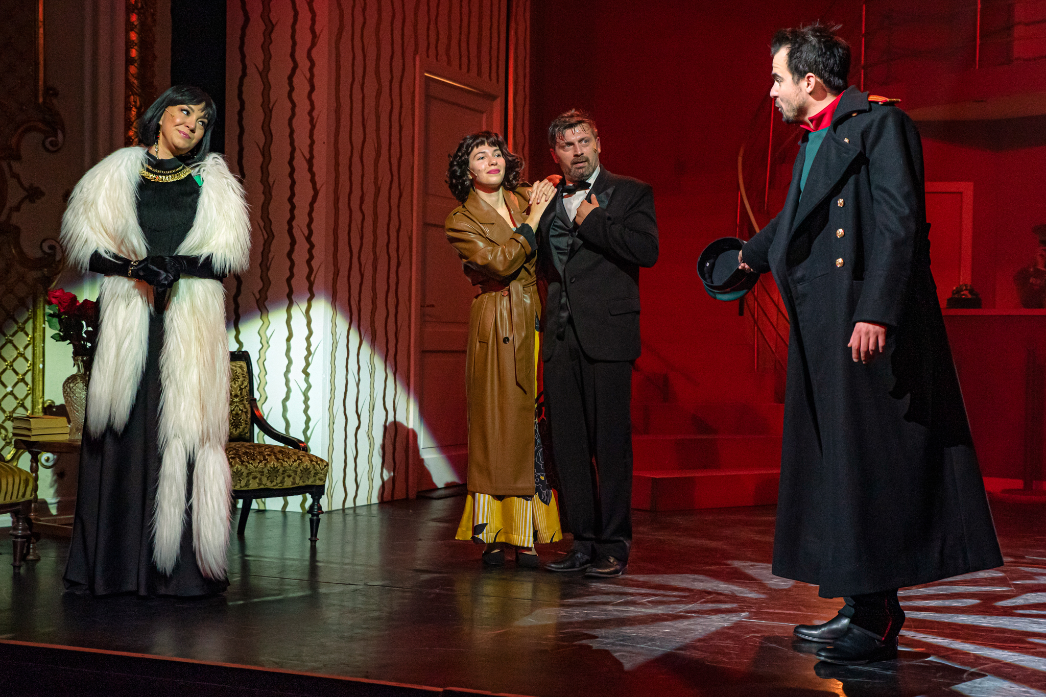 És emellett ott van Poire, a neurotikus impresszárió, pragmatikus nejével az oldalán, aki azért fohászkodik, hogy ha már egyeseknek ilyen elmebaj ez a szerelem-dolog, akkor legalább ne kellene frászban élni, előadásokat lemondani, igazodva a művésznő viharos magánéletéhez. Hogy mindeközben egy agyament Kormányzó is üldözi Sybillt, a Kormányzót meg a helyi nőegylet vezetője, az már szinte természetes. Ahogy természetesen medvében sem lesz hiány.