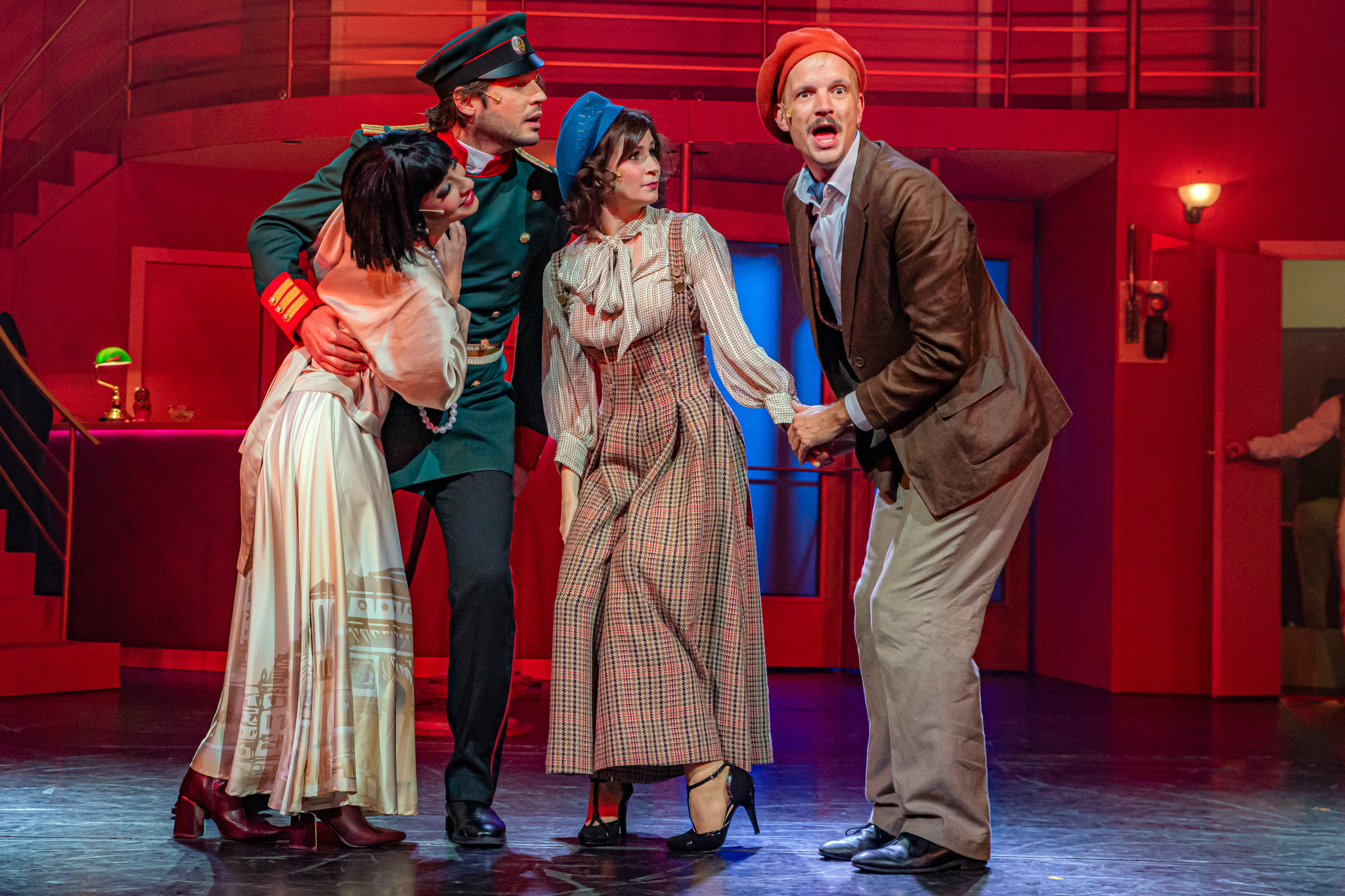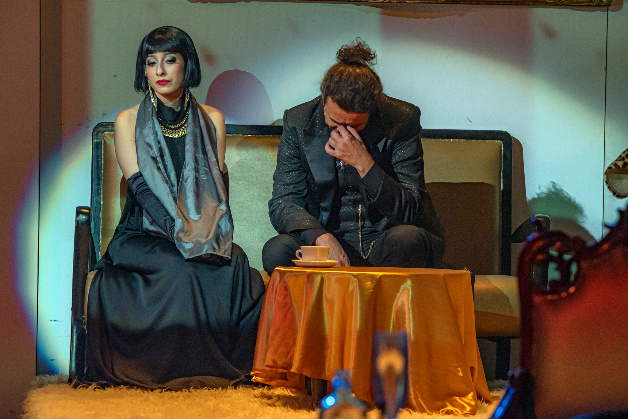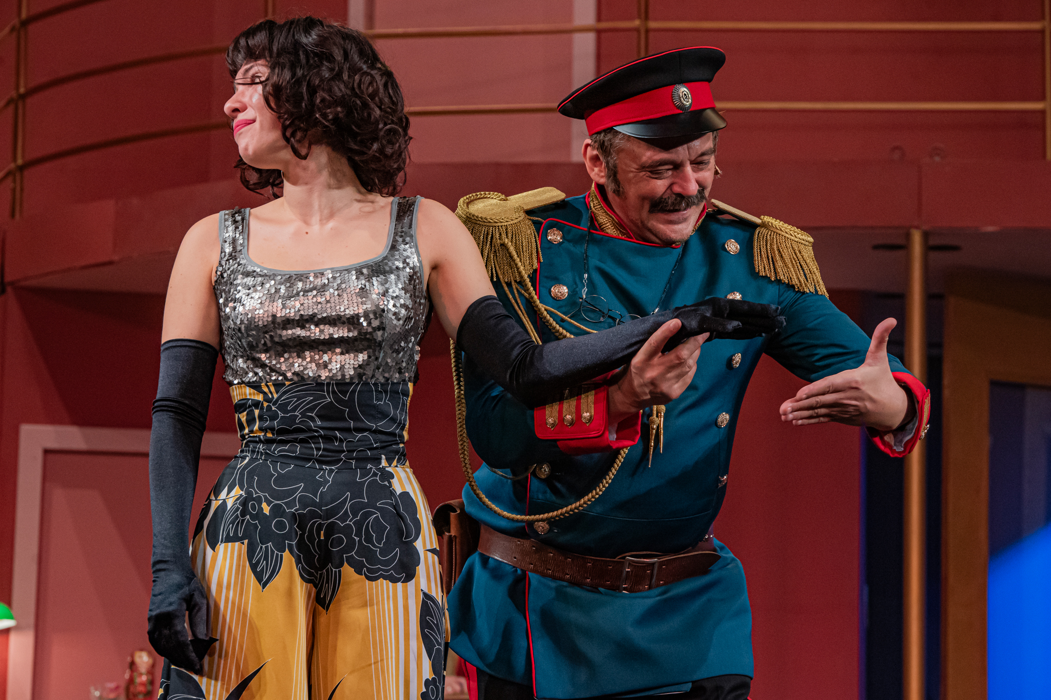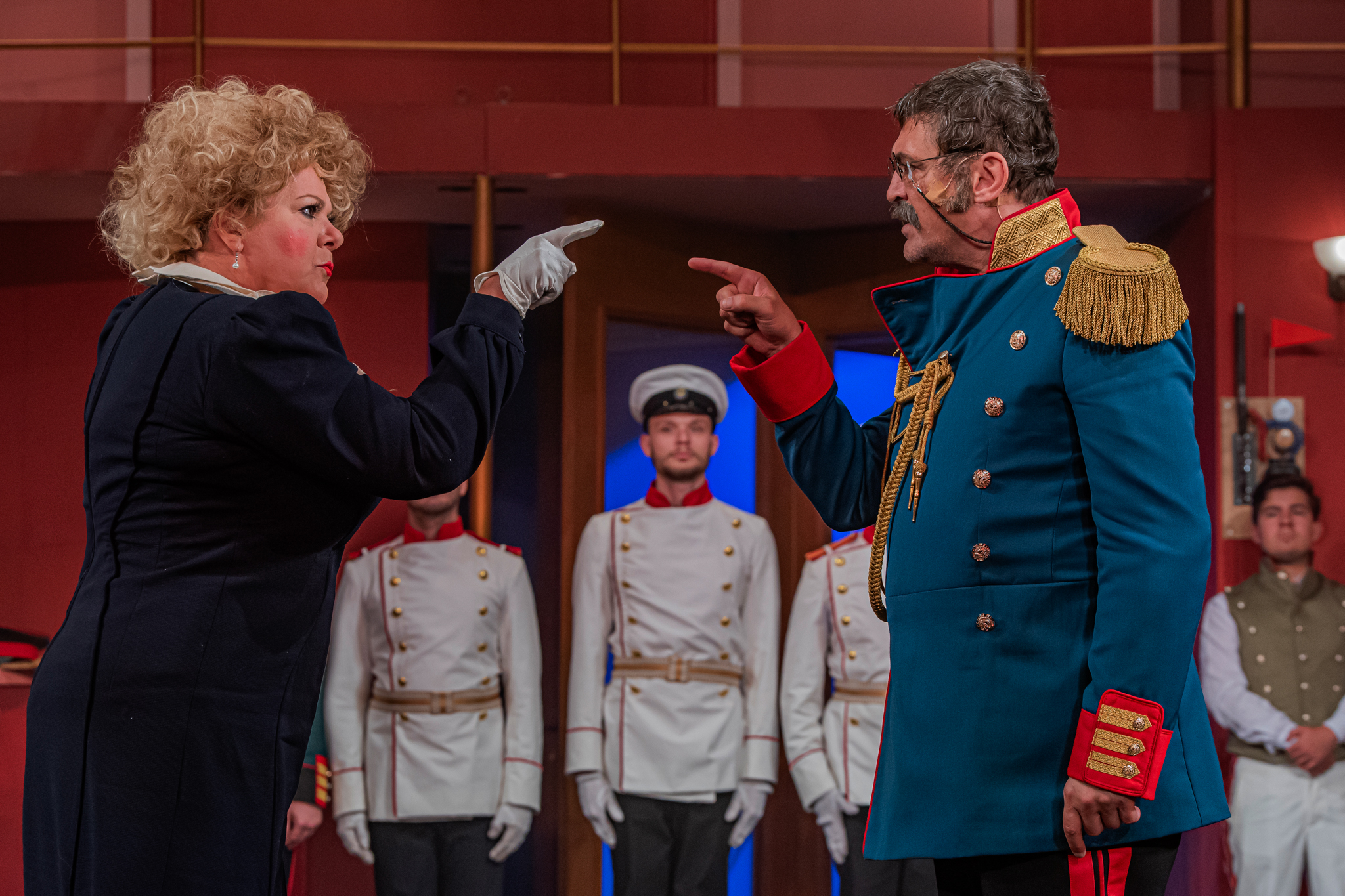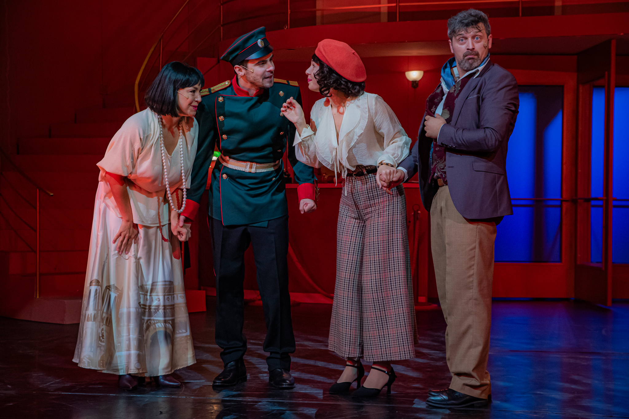 És emellett ott van Poire, a neurotikus impresszárió, pragmatikus nejével az oldalán, aki azért fohászkodik, hogy ha már egyeseknek ilyen elmebaj ez a szerelem-dolog, akkor legalább ne kellene frászban élni, előadásokat lemondani, igazodva a művésznő viharos magánéletéhez. Hogy mindeközben egy agyament Kormányzó is üldözi Sybillt, a Kormányzót meg a helyi nőegylet vezetője, az már szinte természetes. Ahogy természetesen medvében sem lesz hiány.