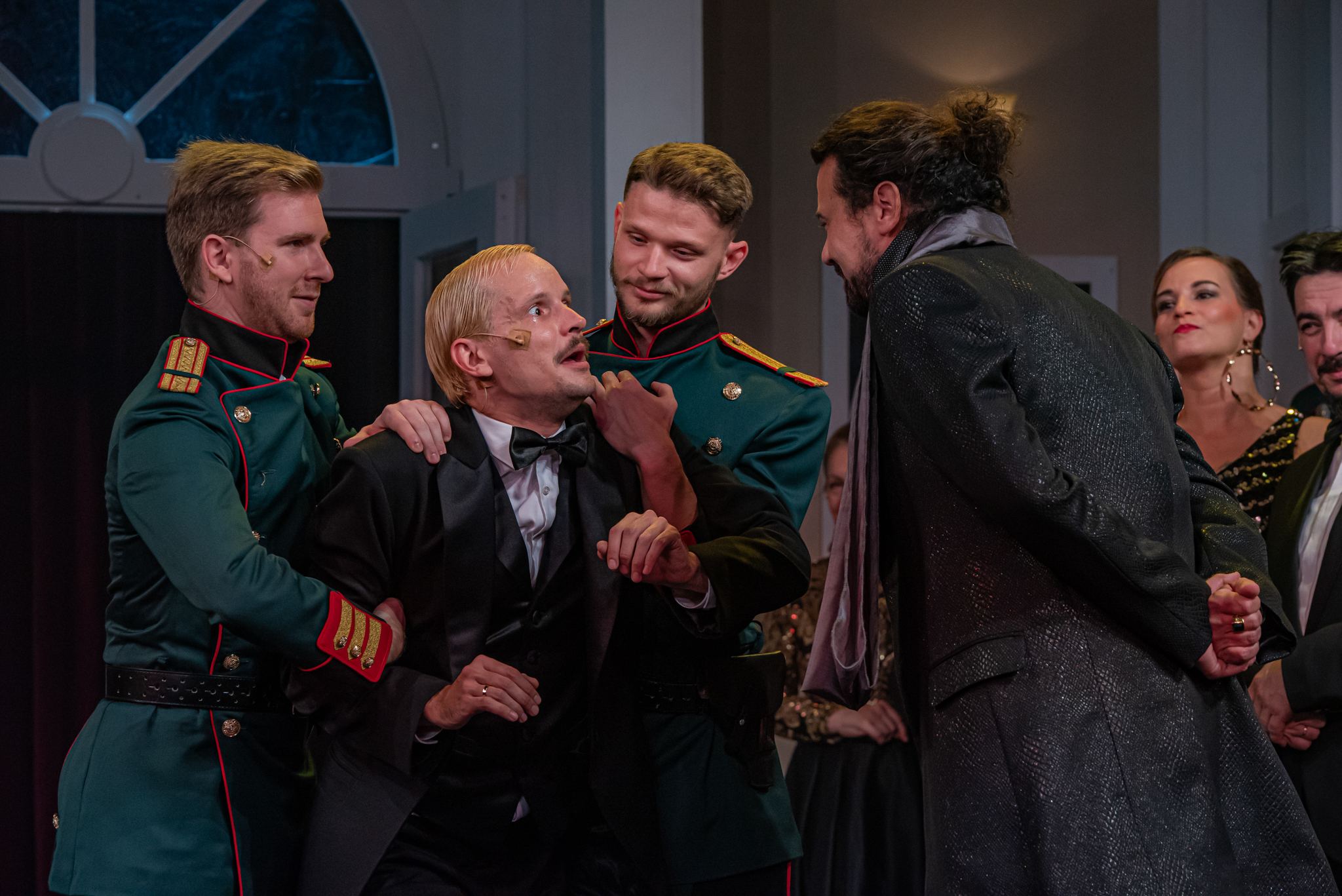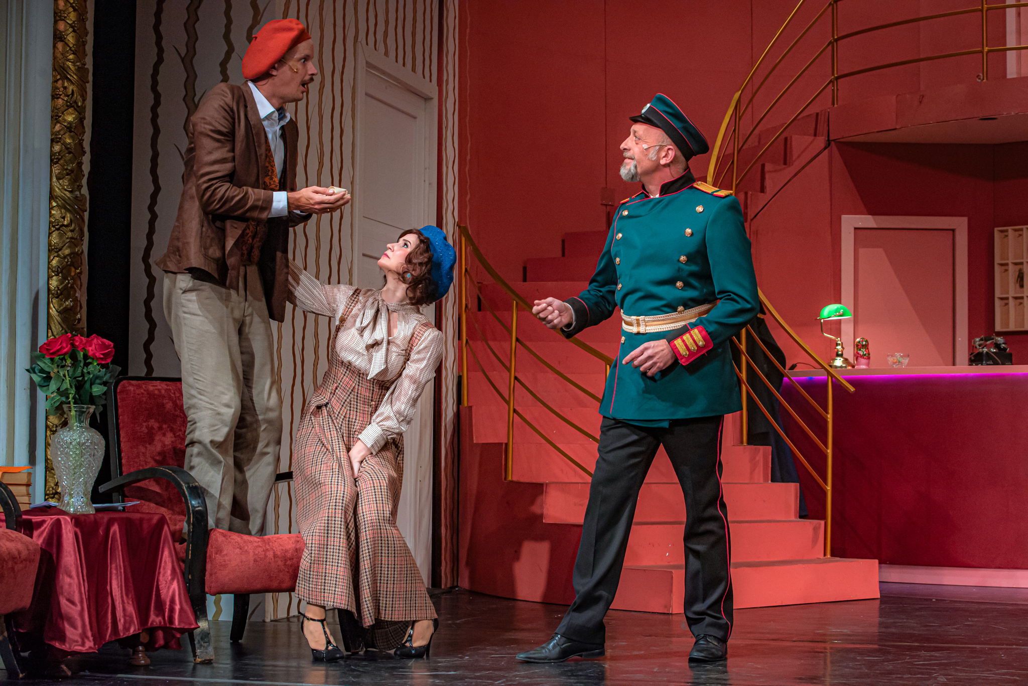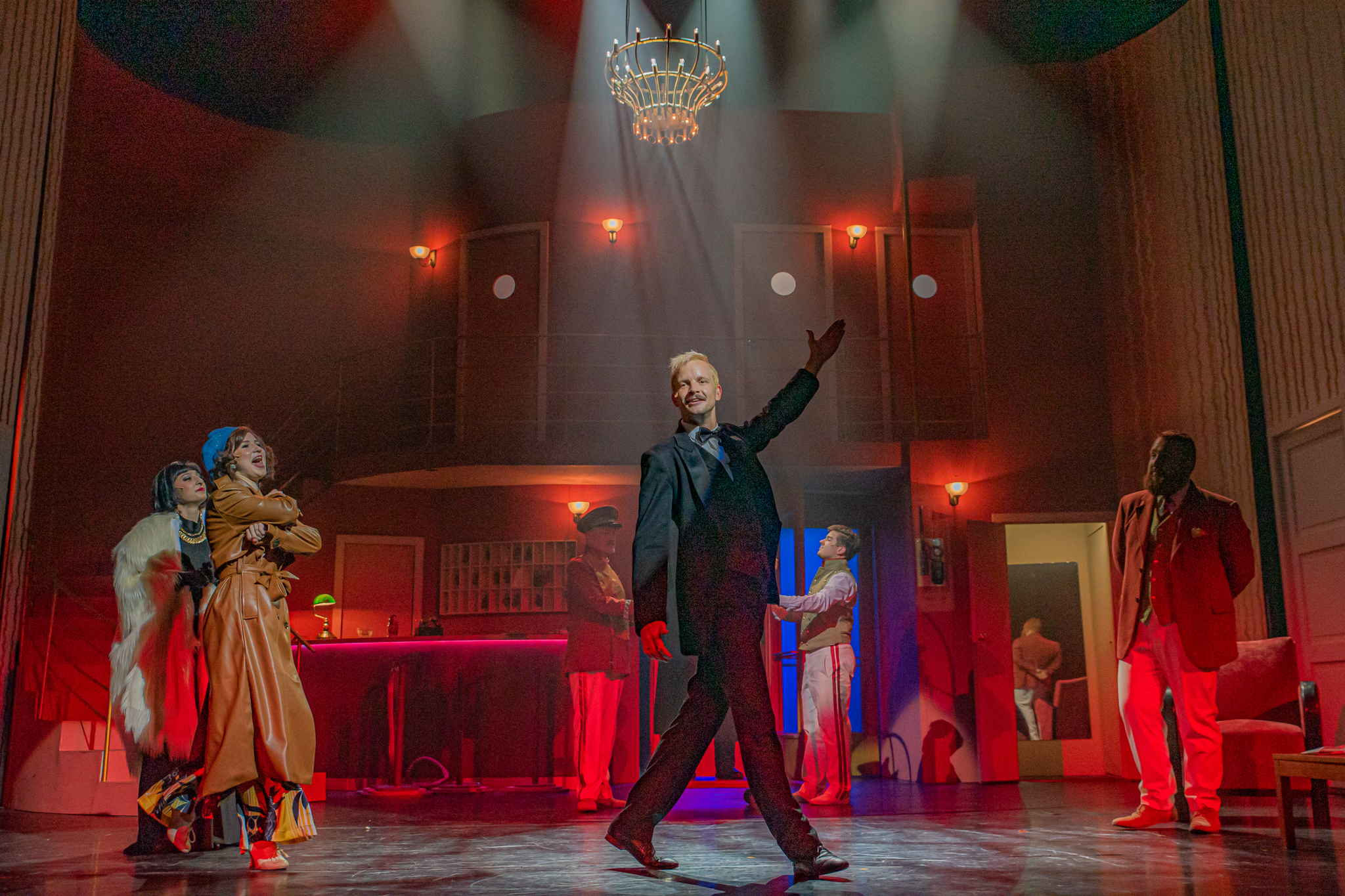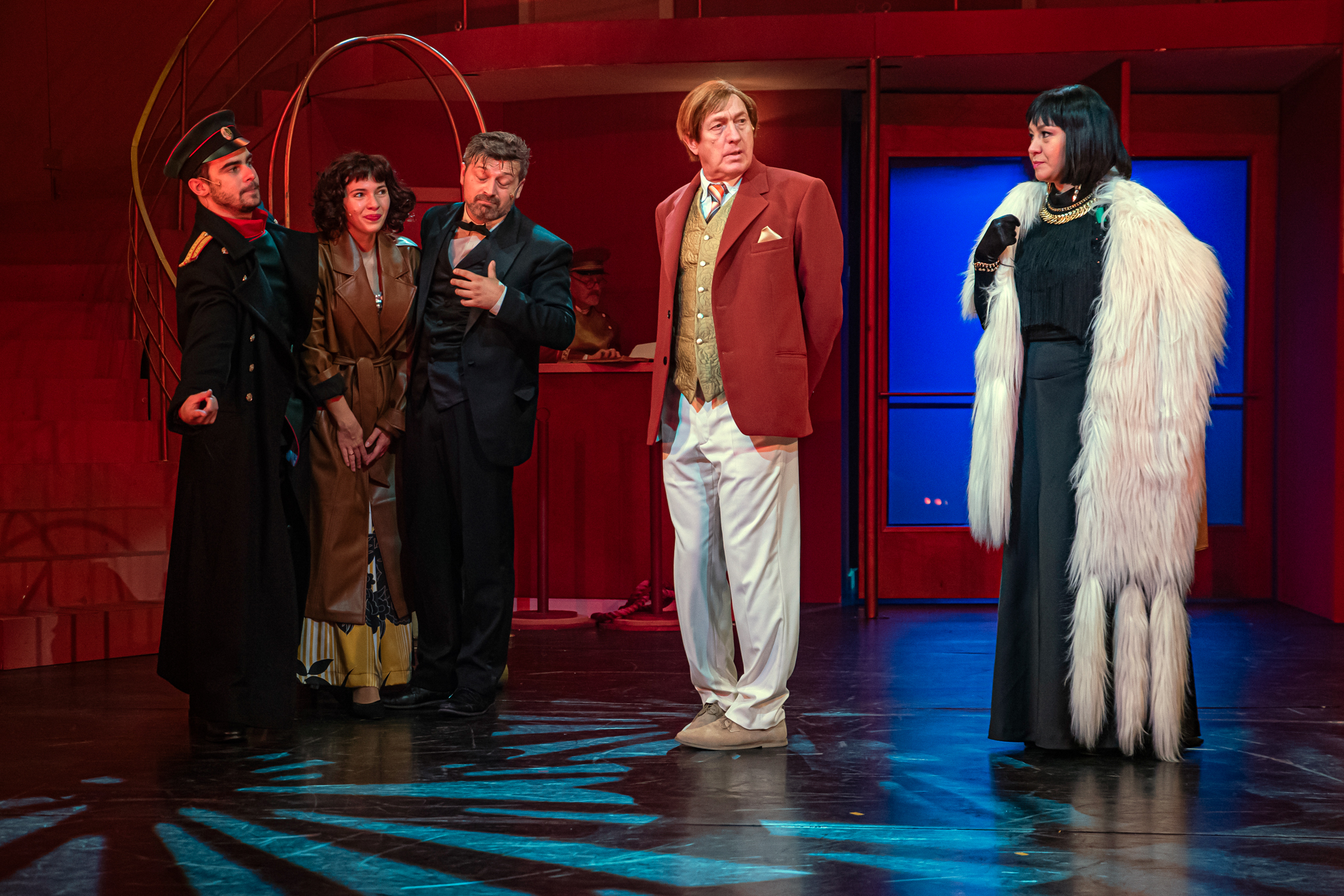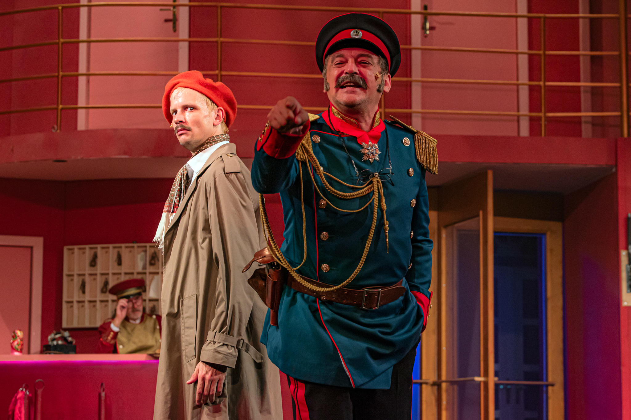 És emellett ott van Poire, a neurotikus impresszárió, pragmatikus nejével az oldalán, aki azért fohászkodik, hogy ha már egyeseknek ilyen elmebaj ez a szerelem-dolog, akkor legalább ne kellene frászban élni, előadásokat lemondani, igazodva a művésznő viharos magánéletéhez. Hogy mindeközben egy agyament Kormányzó is üldözi Sybillt, a Kormányzót meg a helyi nőegylet vezetője, az már szinte természetes. Ahogy természetesen medvében sem lesz hiány.
