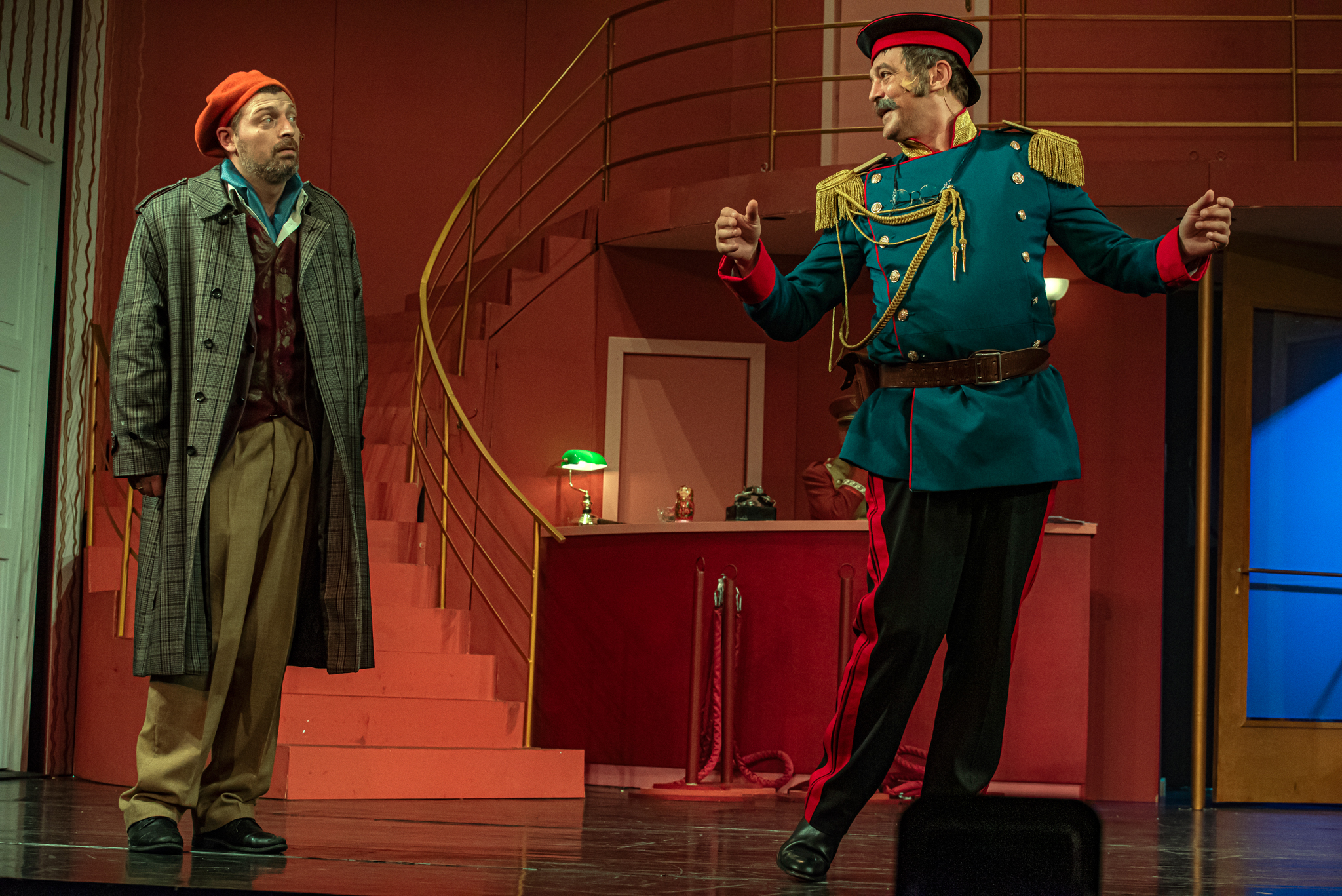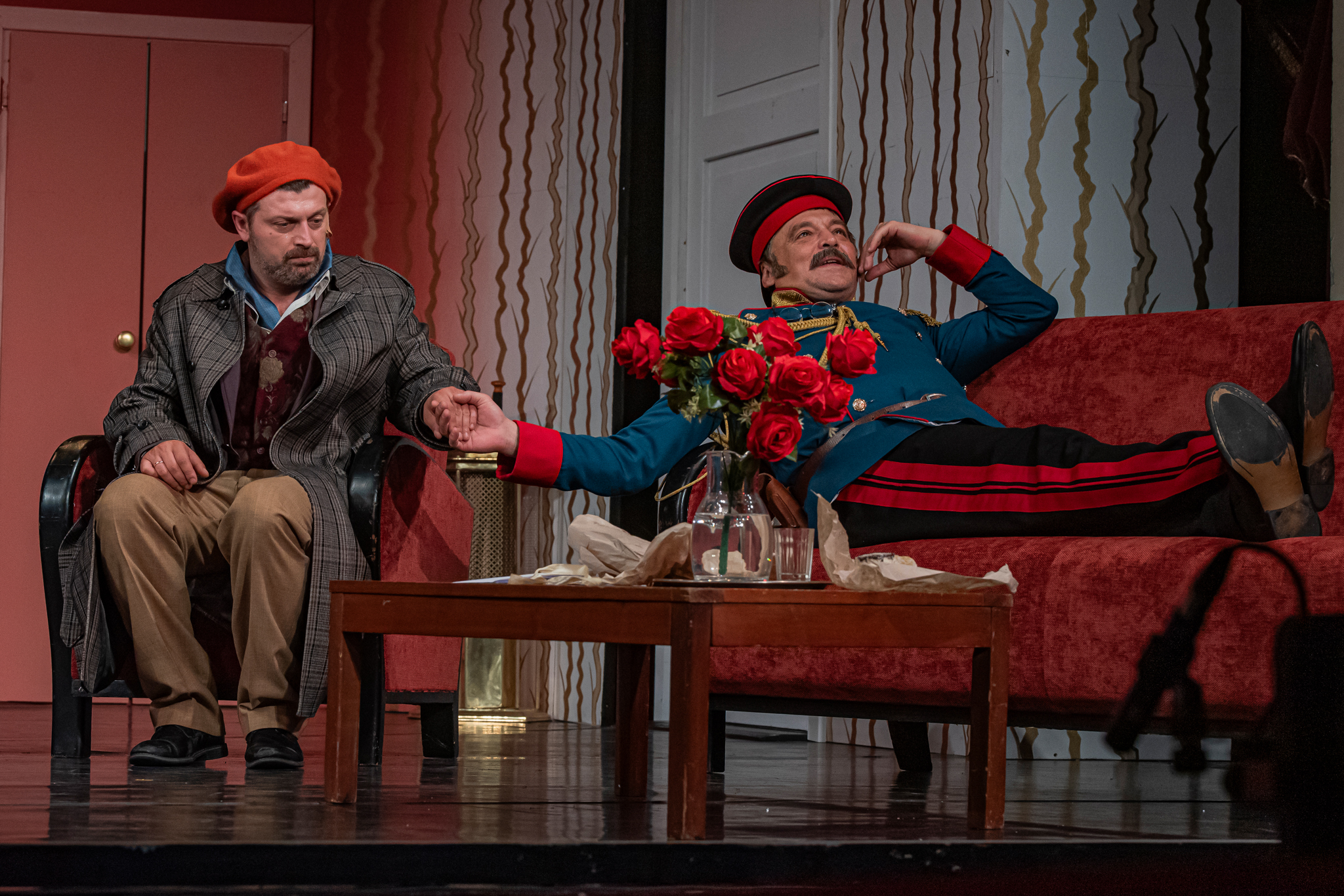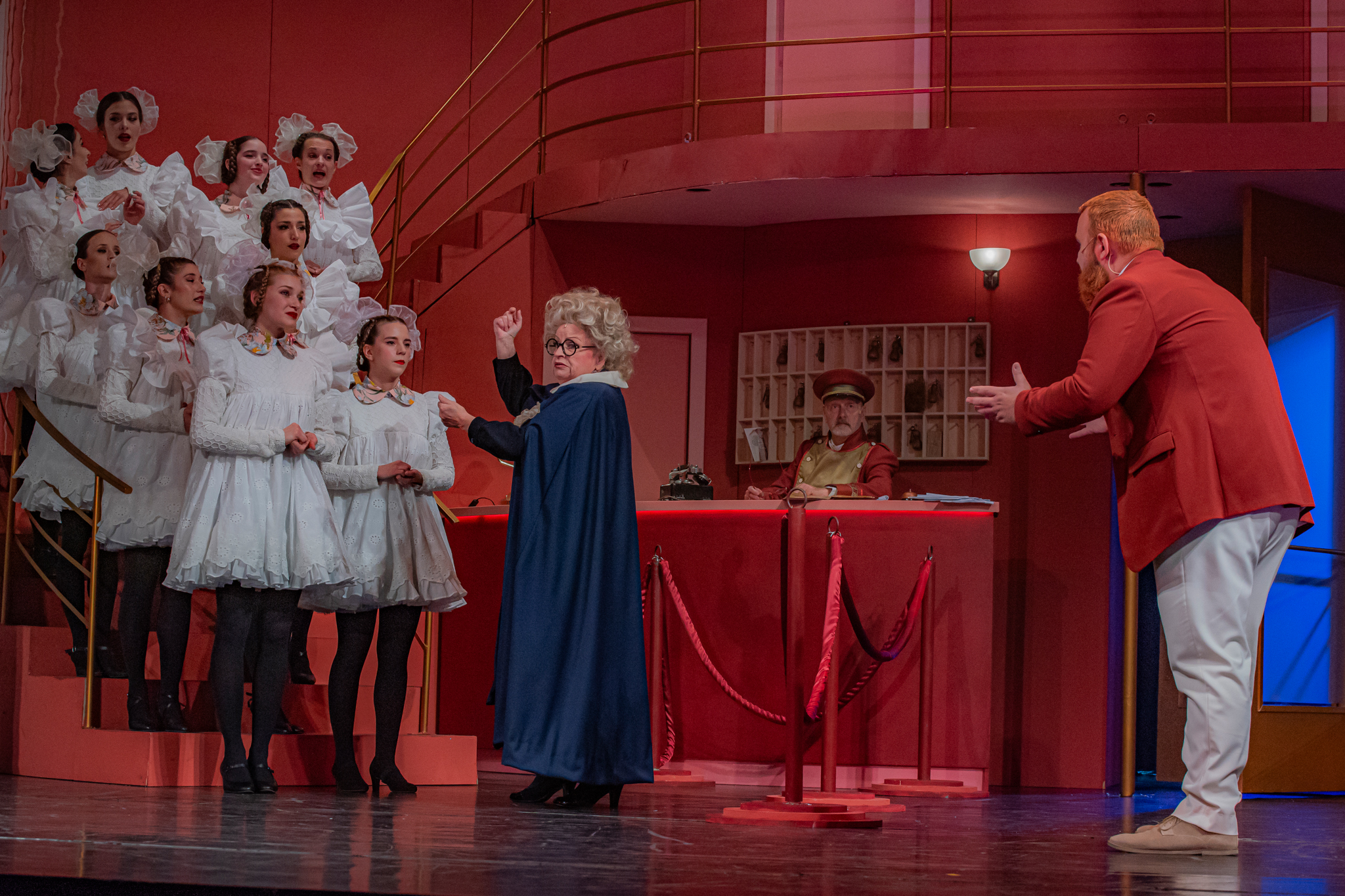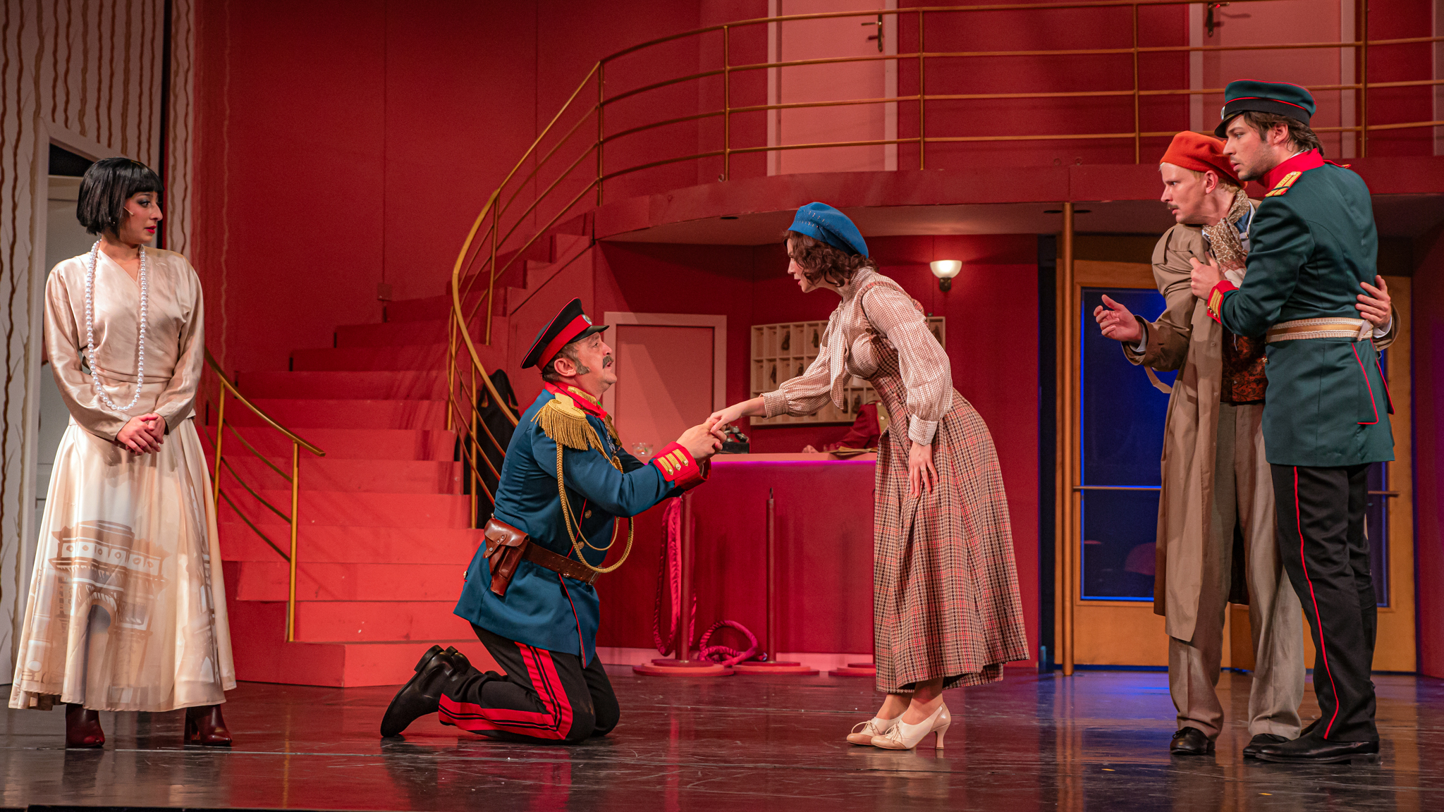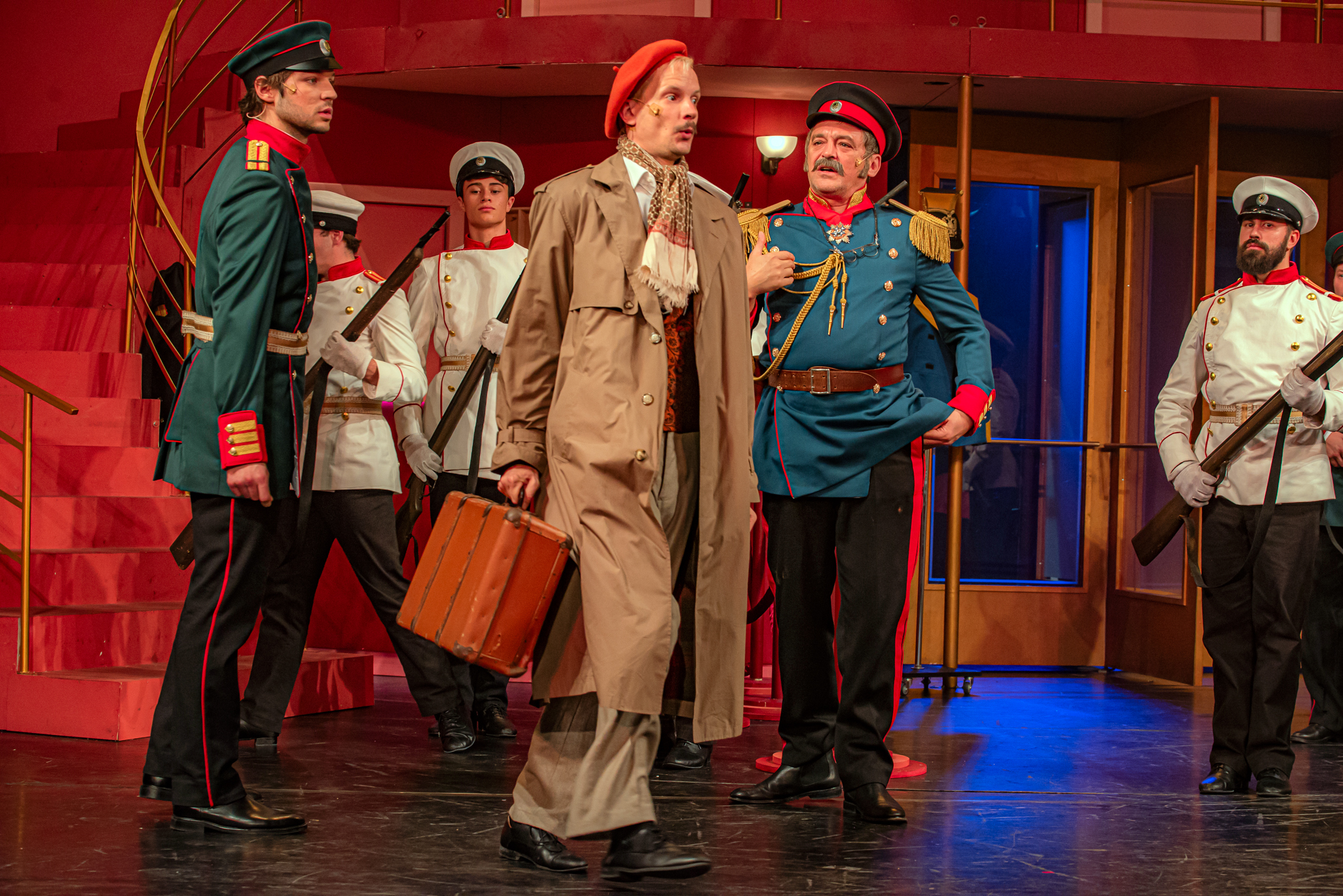 És emellett ott van Poire, a neurotikus impresszárió, pragmatikus nejével az oldalán, aki azért fohászkodik, hogy ha már egyeseknek ilyen elmebaj ez a szerelem-dolog, akkor legalább ne kellene frászban élni, előadásokat lemondani, igazodva a művésznő viharos magánéletéhez. Hogy mindeközben egy agyament Kormányzó is üldözi Sybillt, a Kormányzót meg a helyi nőegylet vezetője, az már szinte természetes. Ahogy természetesen medvében sem lesz hiány.